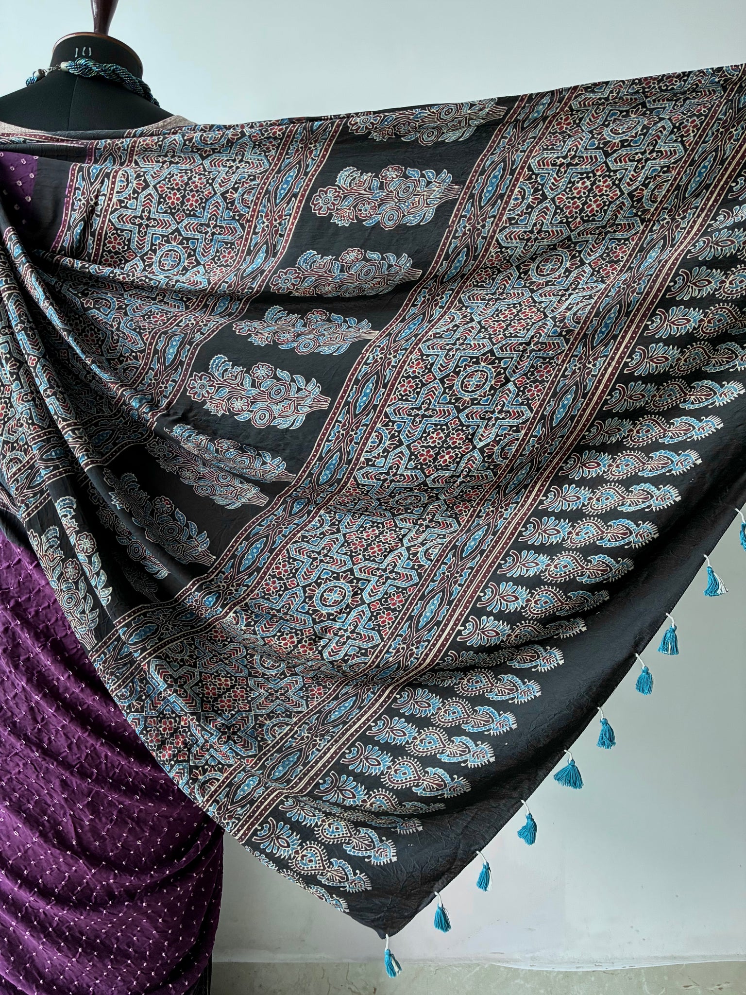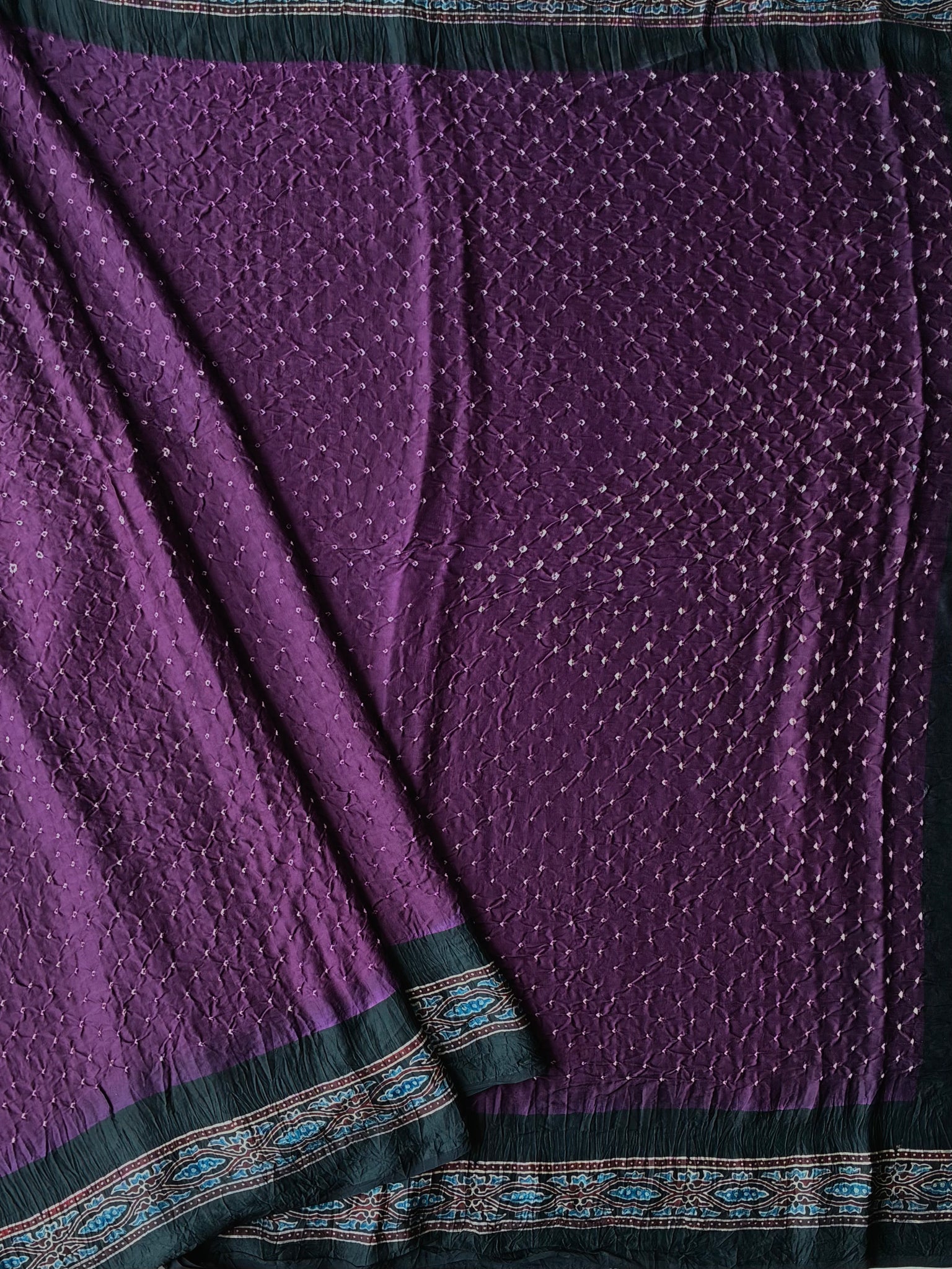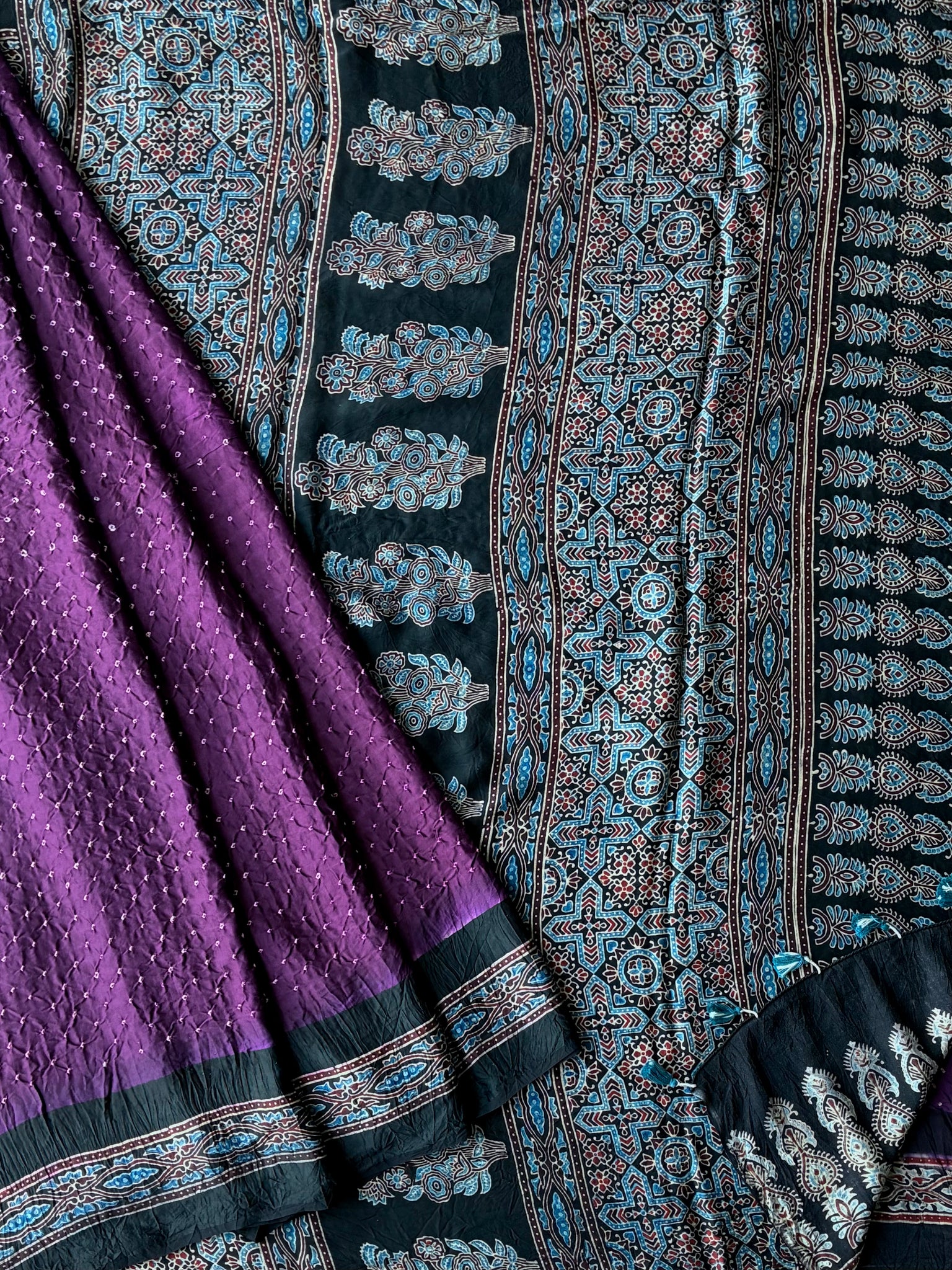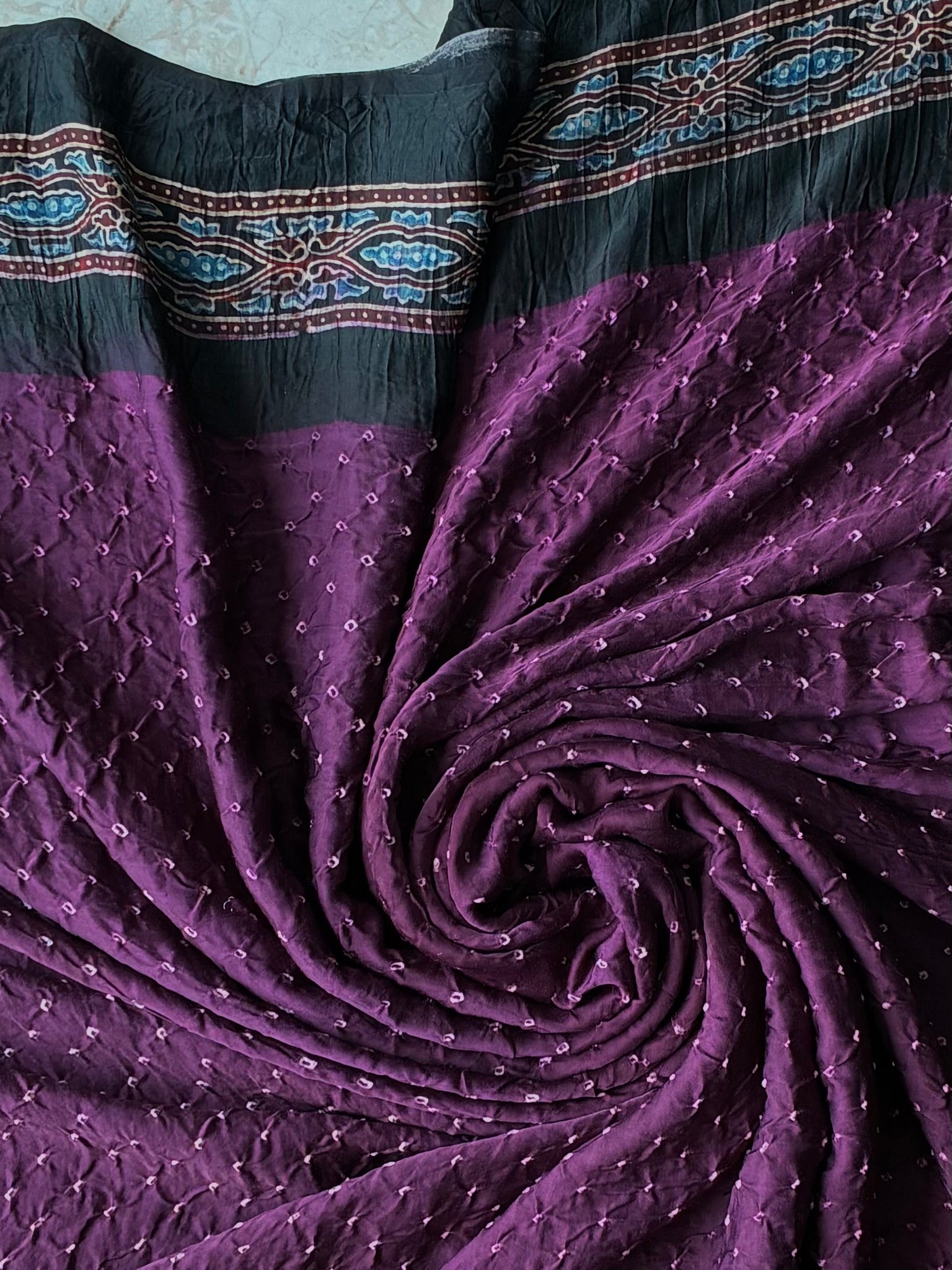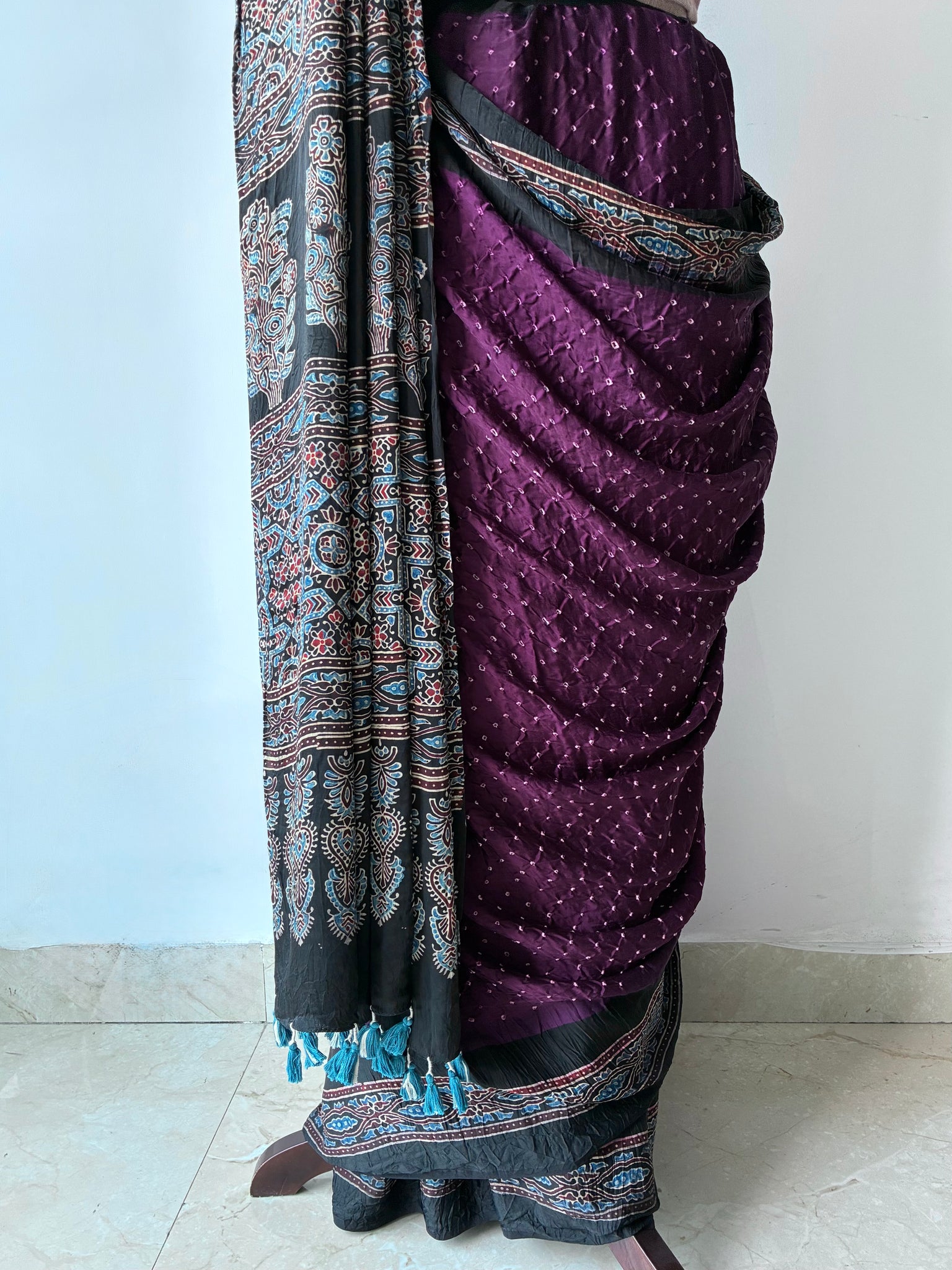 Ajrakh Bandhani, modal silk saree with matching blouse piece.