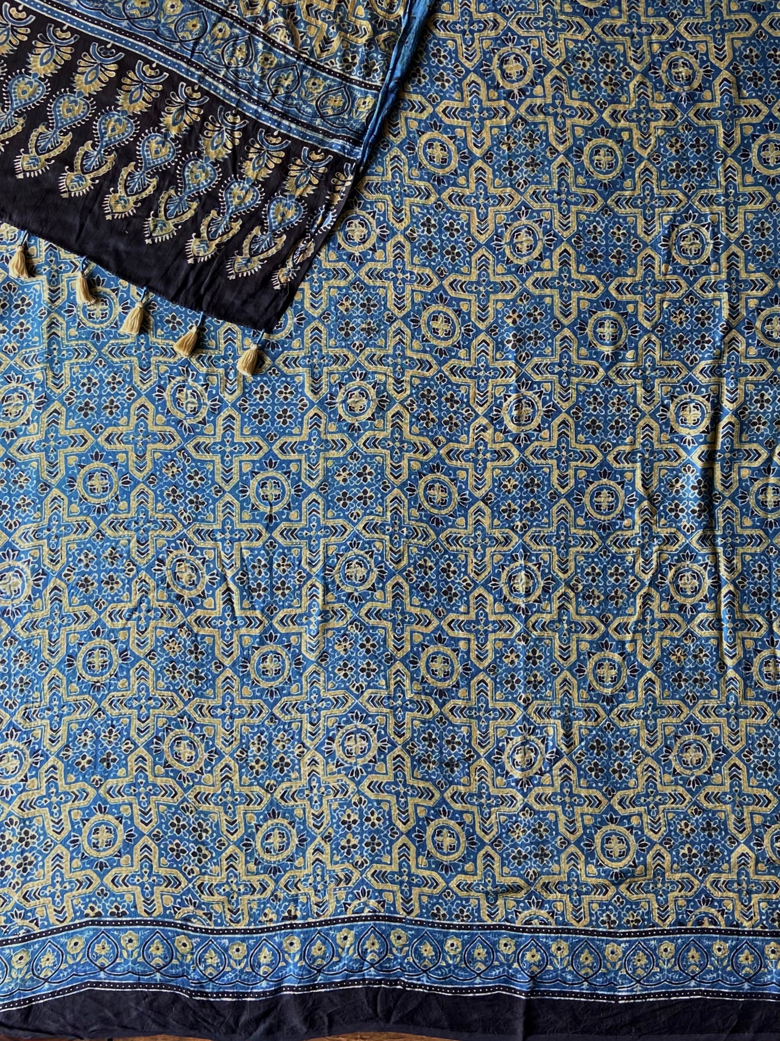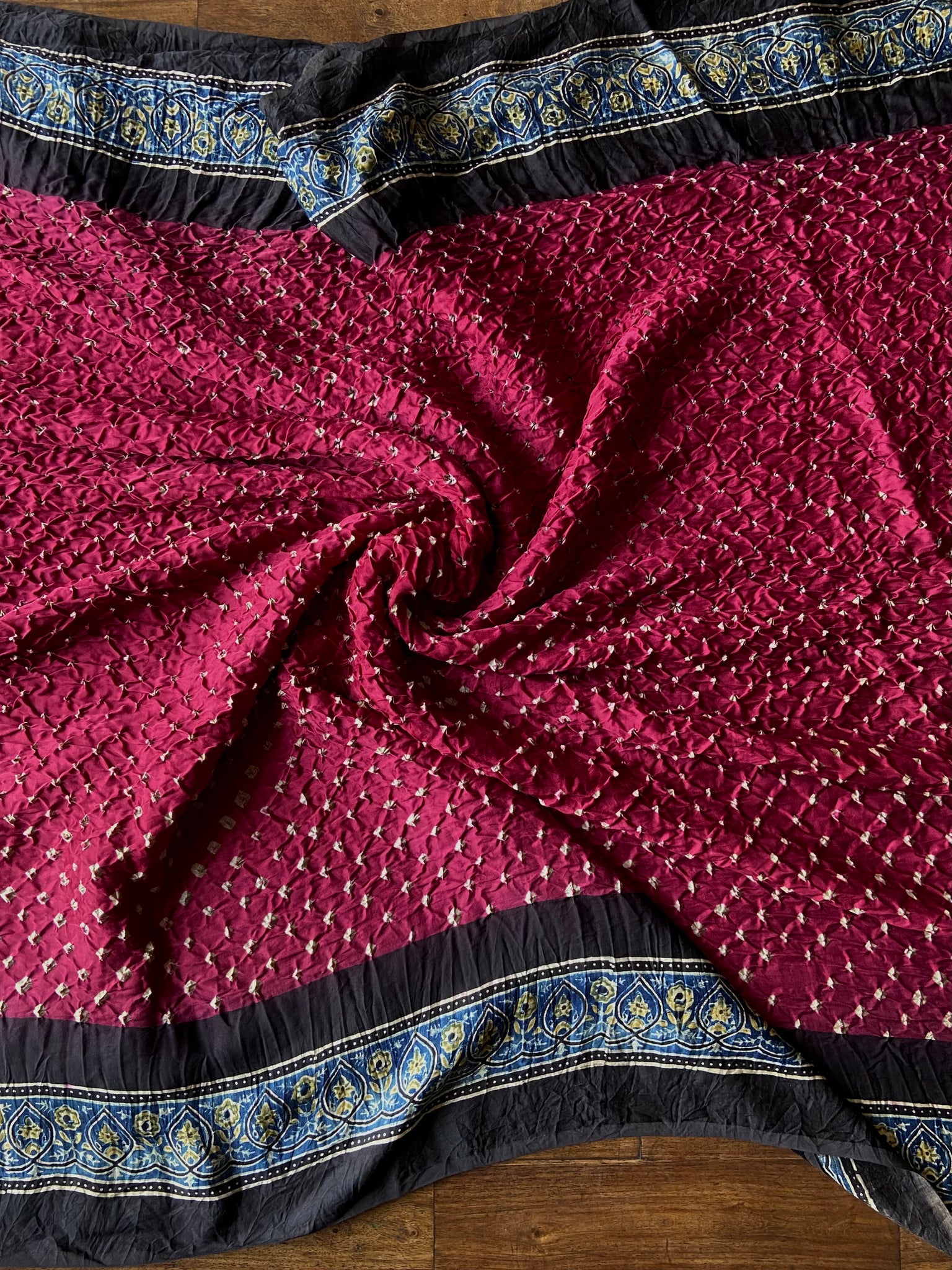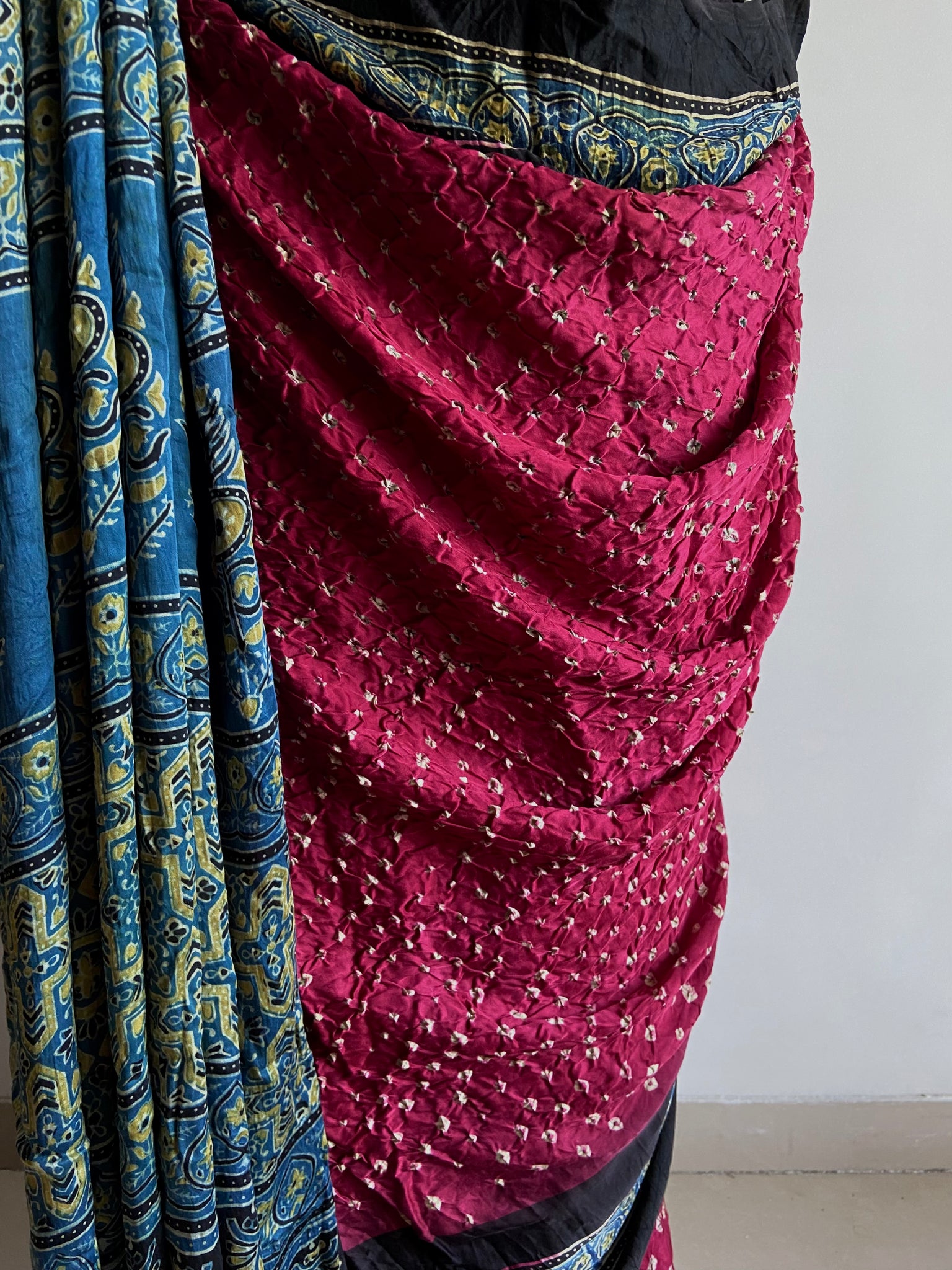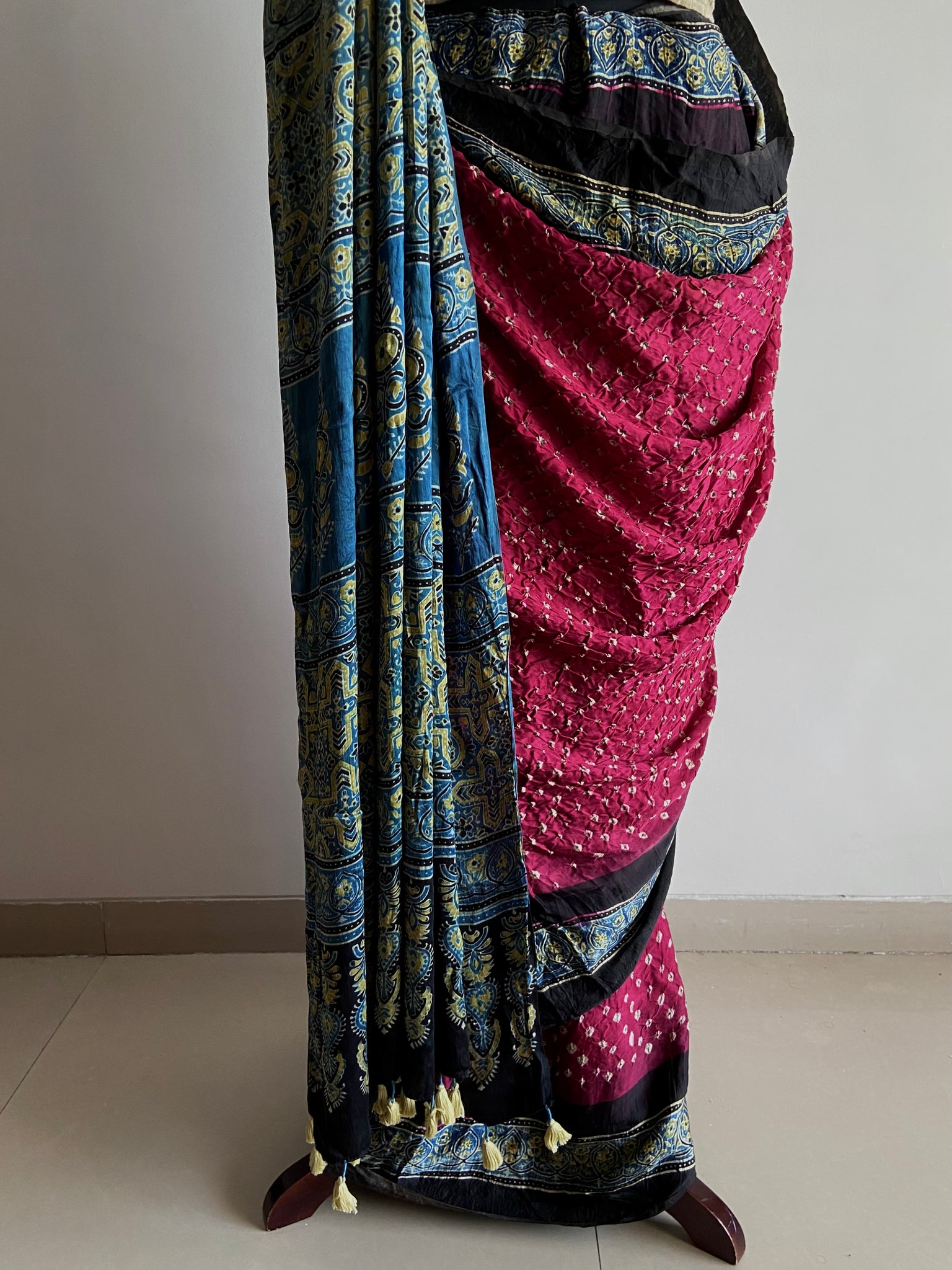 Ajrakh Bandhani, modal silk saree with matching blouse piece.