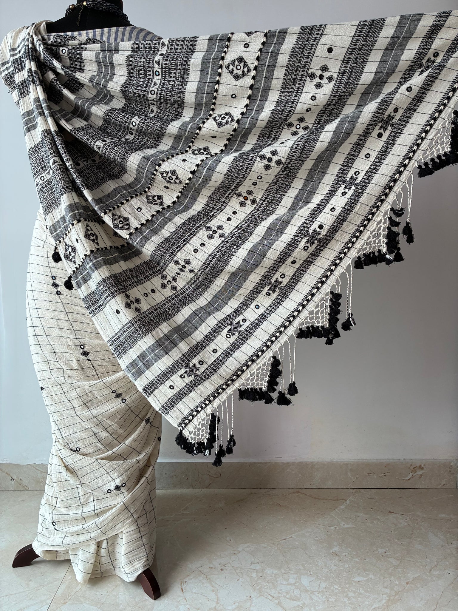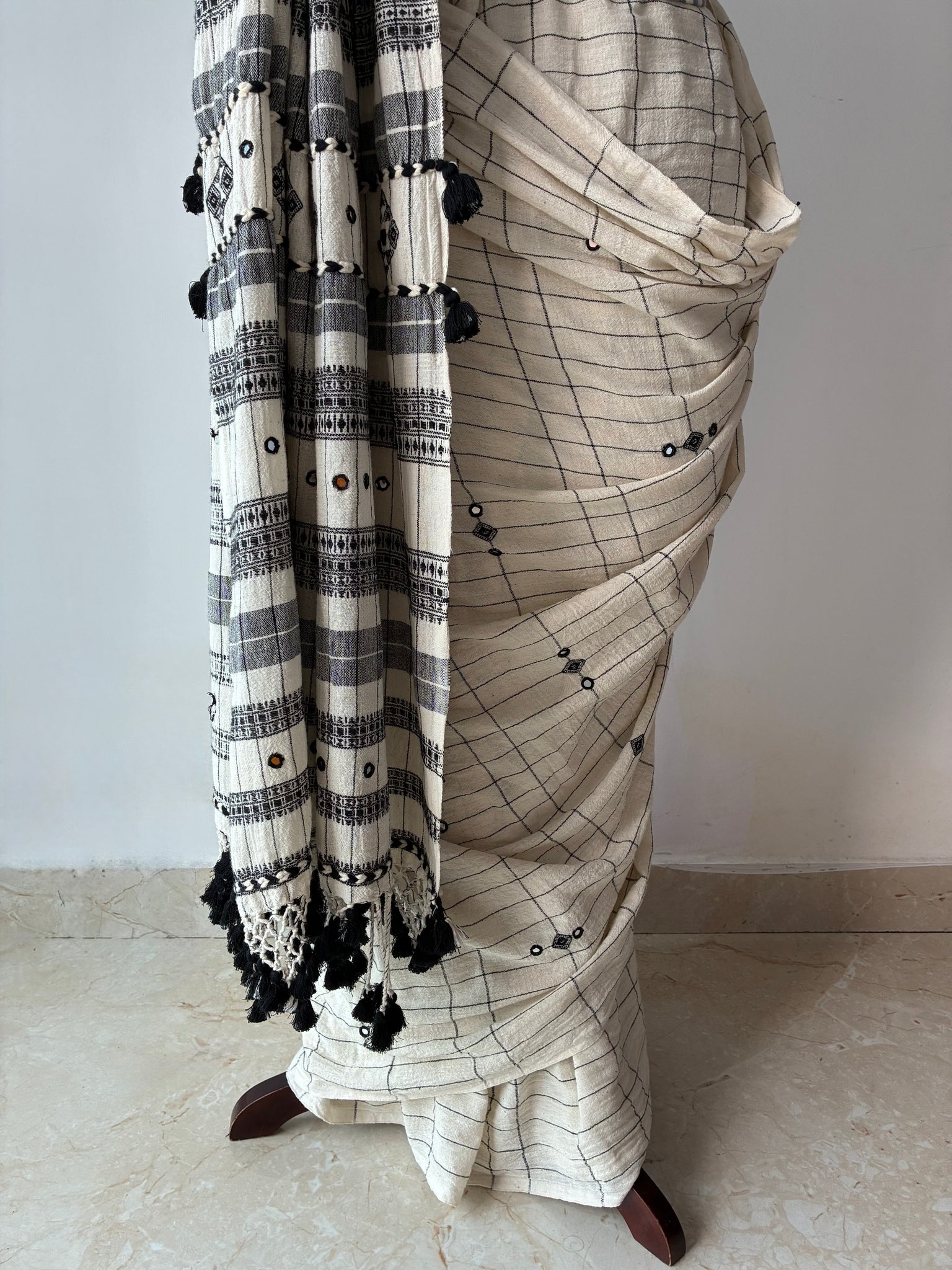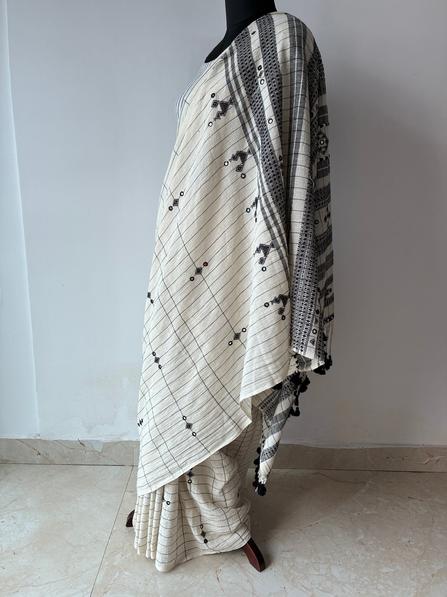 Handwoven Bhujodi Kala Cotton Saree