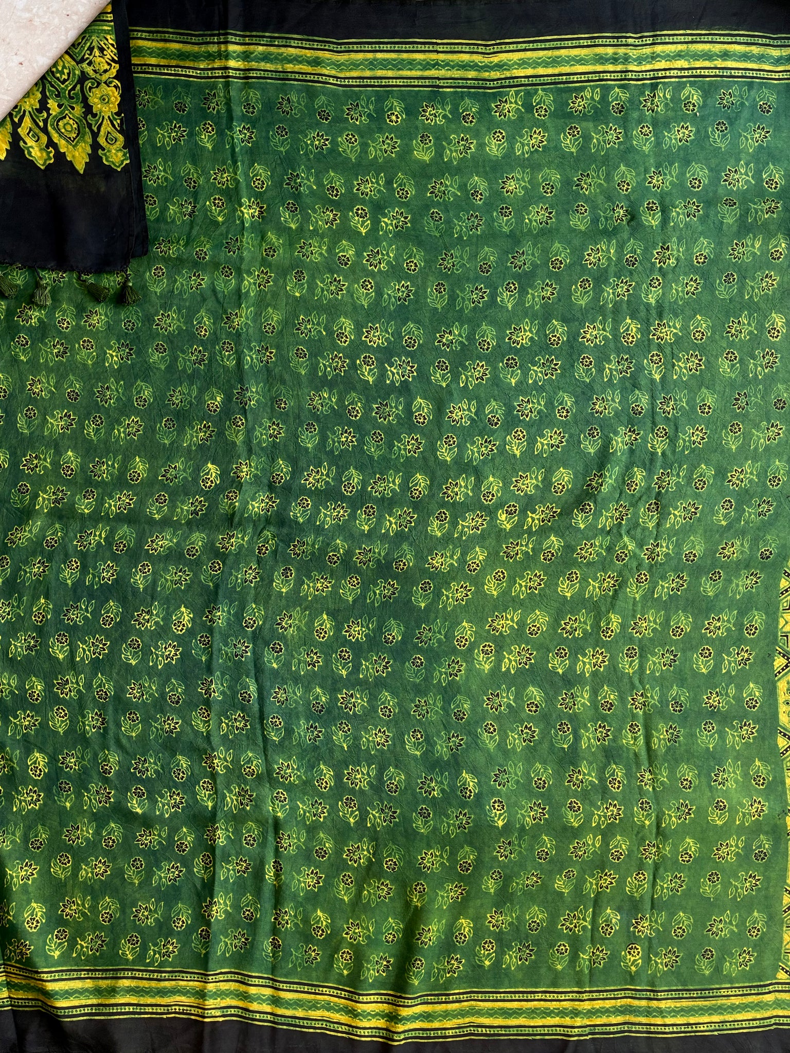 Ajrakh, natural dye, mulberry silk saree with running blouse piece.