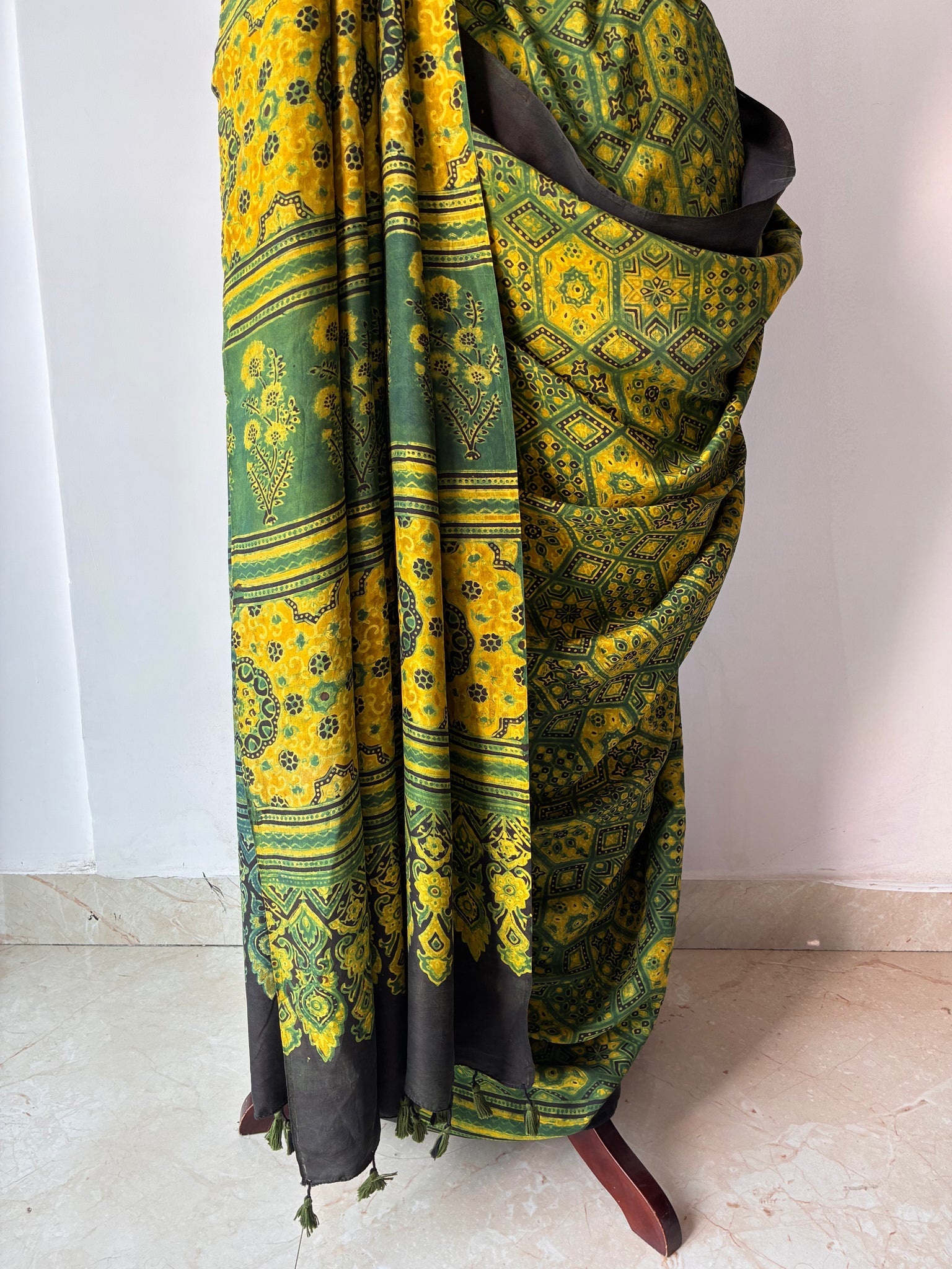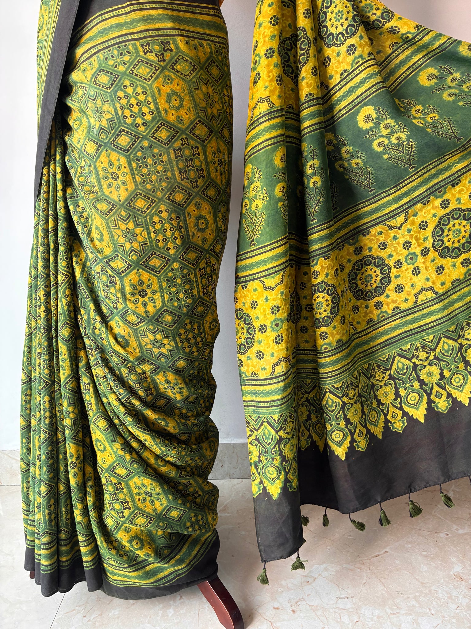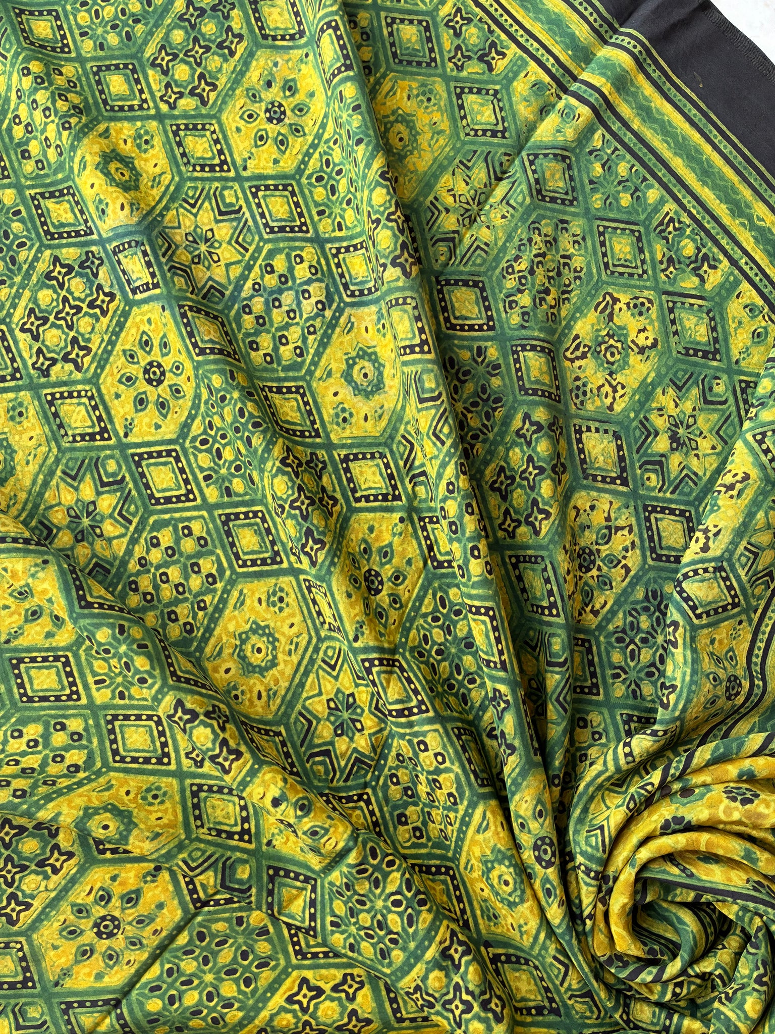 Ajrakh Mulberry Silk Saree